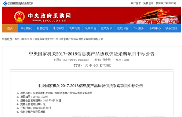 6月1日,中央政府采購網(wǎng)公布了“中央國家機關(guān)2017-2018信息類(lèi)產(chǎn)品協(xié)議供貨采購項目中標公告”,遠望信息計算機終端保密檢查系統、網(wǎng)絡(luò )資產(chǎn)與邊界感知系統、網(wǎng)絡(luò )接入控制系統、計算機敏感信息檢測系統、視頻監控綜合運維報警系統等6款產(chǎn)品成功入圍采購名錄!